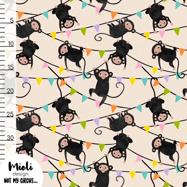 Kankaan esipesu ja valmisvaatteen pesu 40°C. Valmisvaate suositellaan pestäväksi nurinpäin käännettynä, jotta kankaan kuosiin kohdistuu mahdollisimman vähän hankausta pesun aikana.