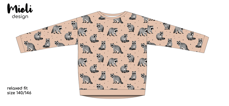 Kankaan esipesu ja valmisvaatteen pesu 40°C. Valmisvaate suositellaan pestäväksi nurinpäin käännettynä, jotta kankaan kuosiin kohdistuu mahdollisimman vähän hankausta pesun aikana.